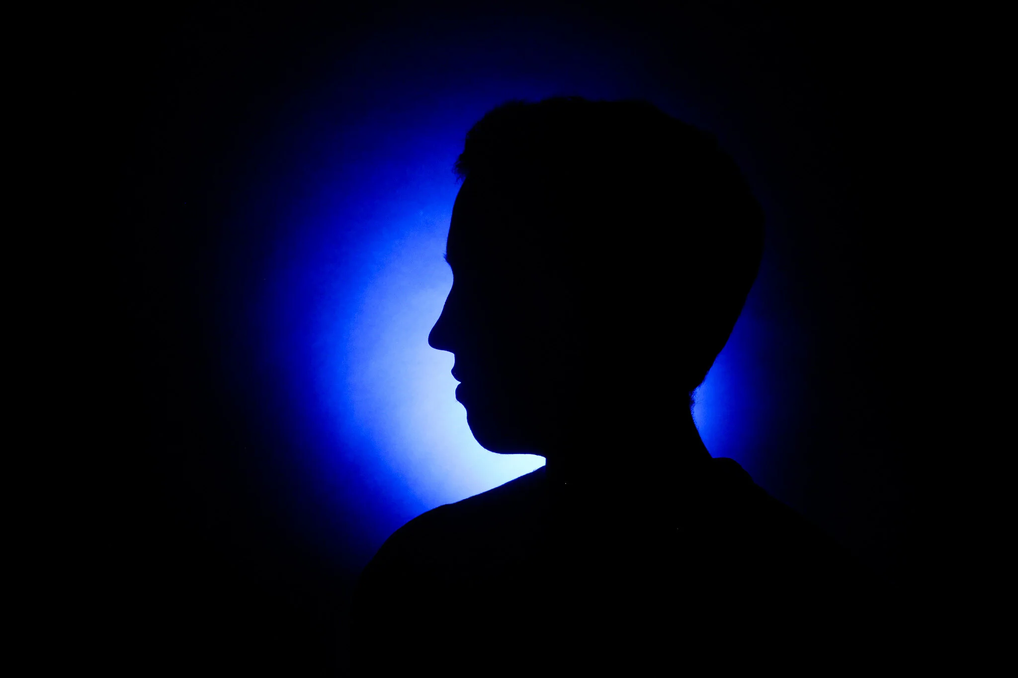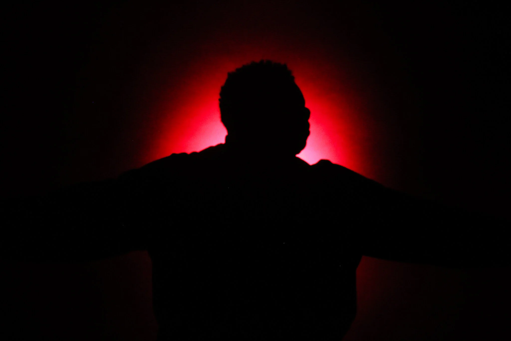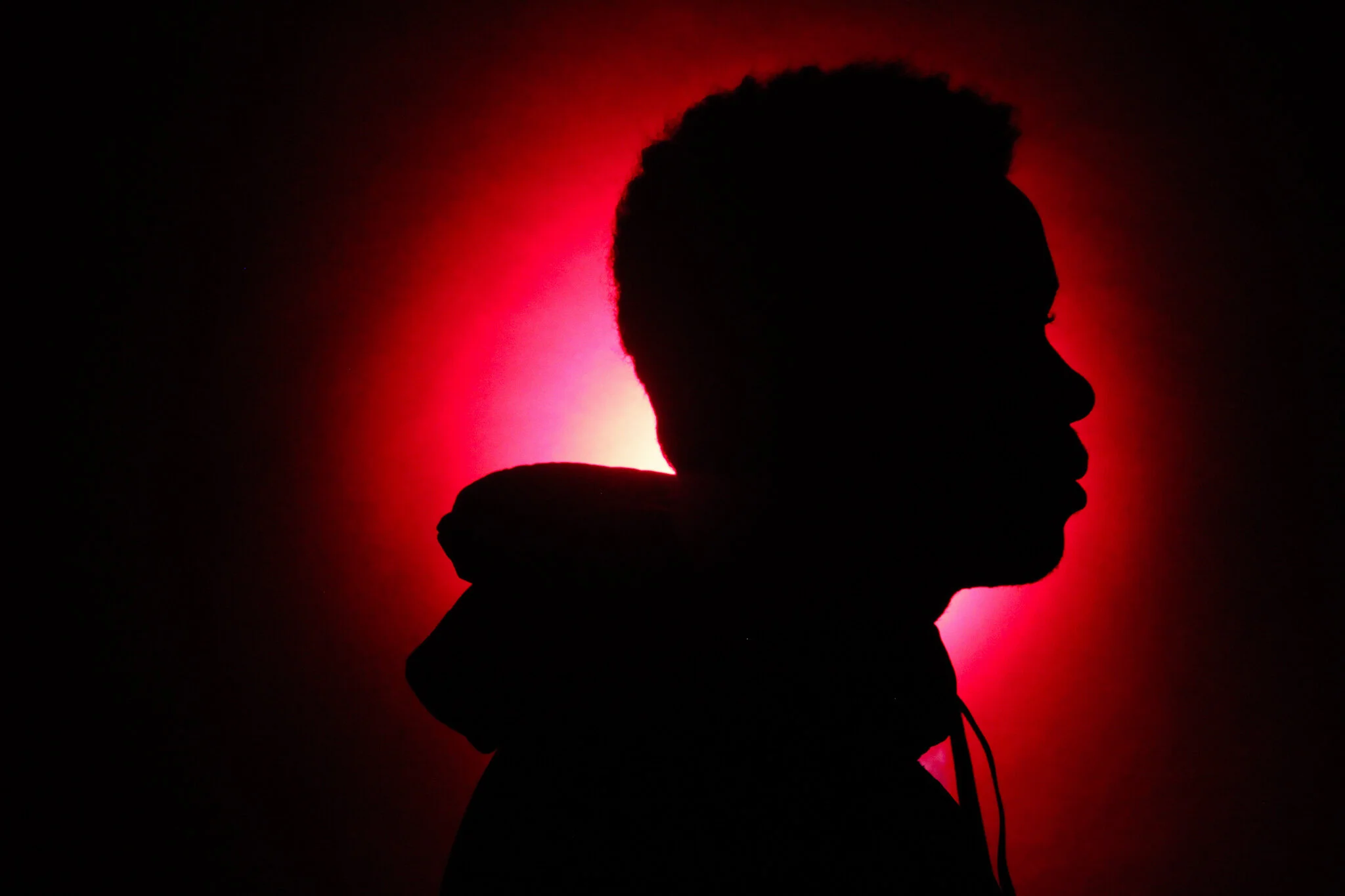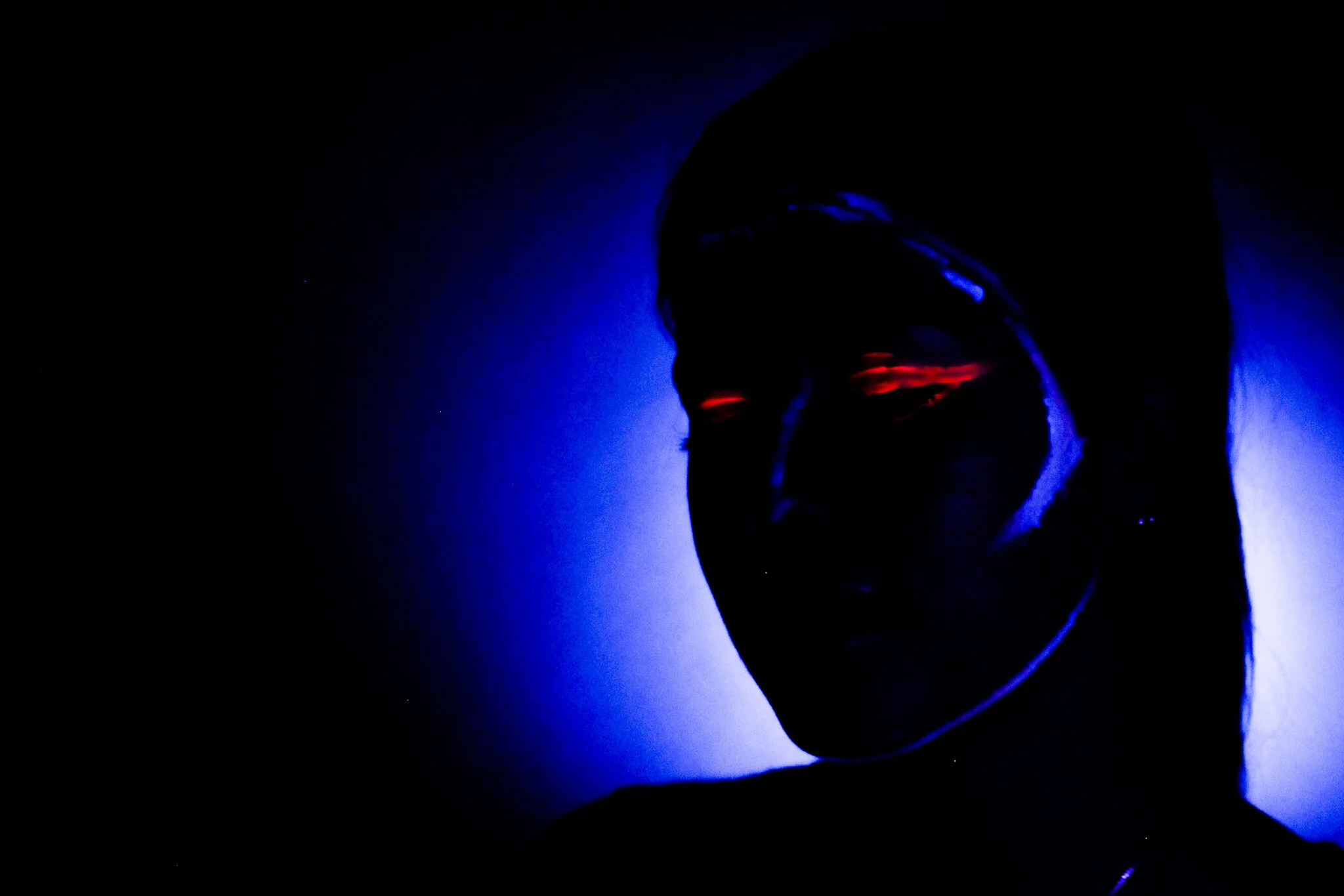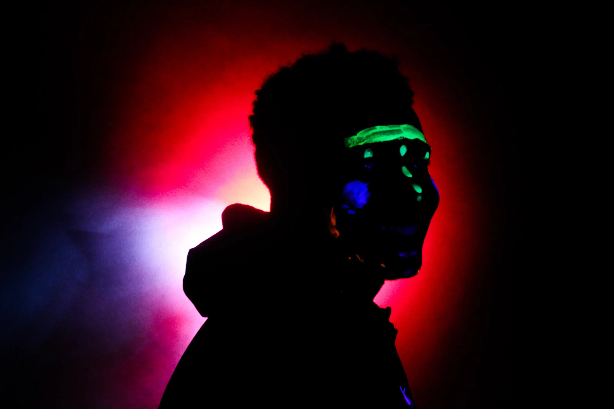 In this photo, the UV light was too close to the subject, which illuminated natural highlights of the skin and lost the silhouette effect.