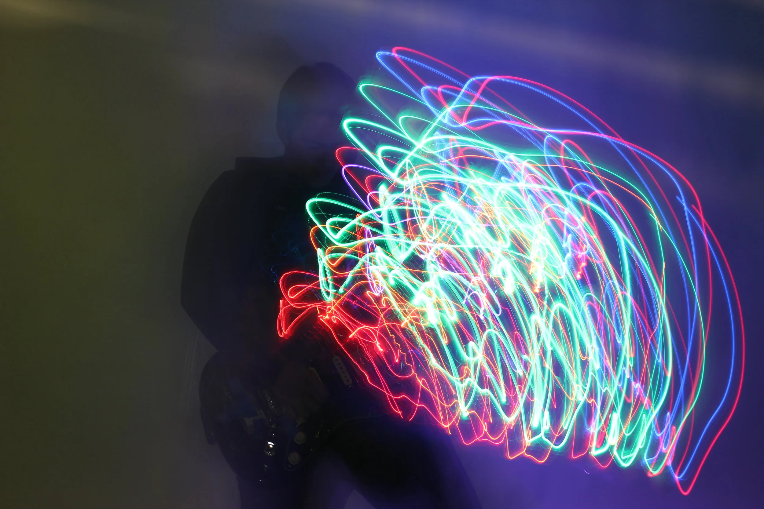 10-15 second shutter speed(allows more light painting, but also prevents from too much light getting into the photo)