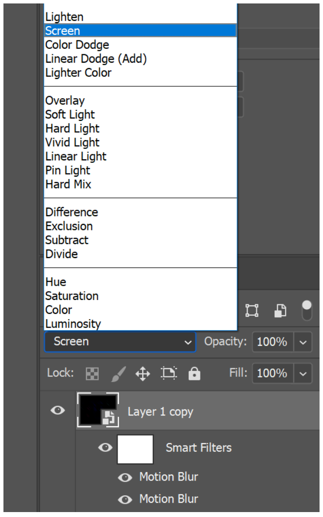 With the new Smart Object selected, go to Filter → Blur → Motion Blur. Apply the blur at 45 degrees with the distance of your choosing. Repeat two more times to soften the blur effect.